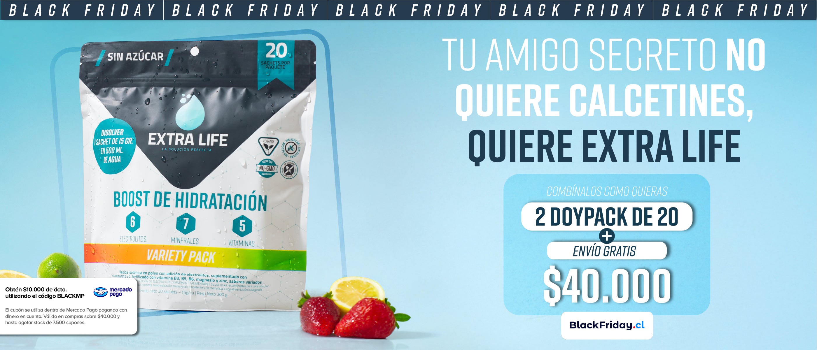 Extra Life es una bebida isotónica en polvo en formato sachet, con más de 1393 mg de electrolitos, vitaminas y minerales creada para combatir los efectos de la deshidratación y ayudarte con tu recuperación.