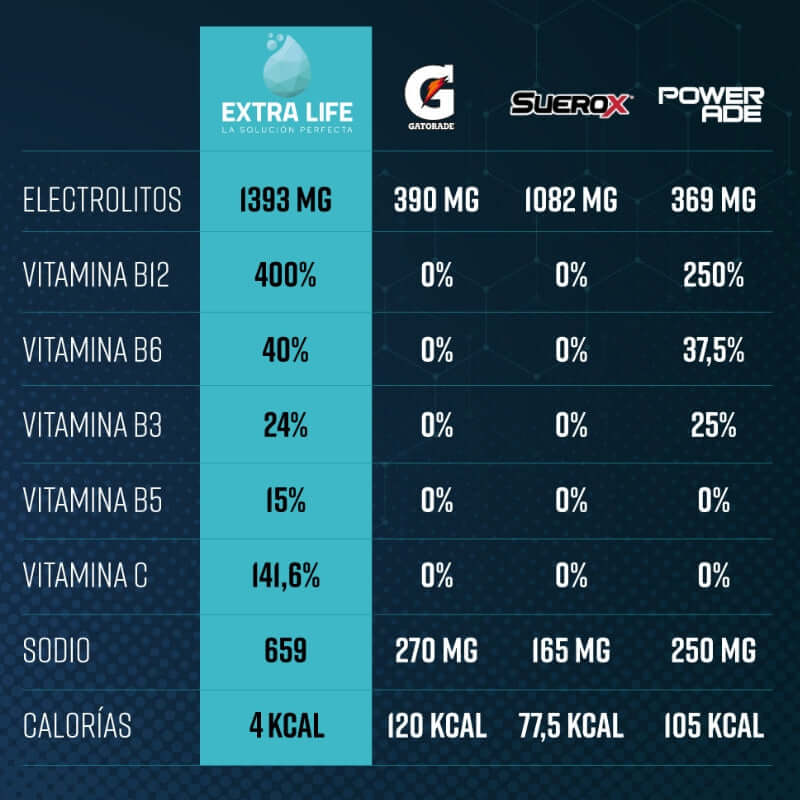 Extra Life está creado para ser la bebida isotónica más hidratante y limpia del mercado. Nos enfocamos en ser la mejor alternativa para ayudar en la recuperación de electrolitos, vitaminas y minerales.